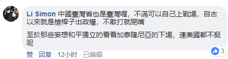 更有網友諷刺說:“中國臺灣省也是臺灣喔,不滿可以上戰場,不敢打就閉嘴!還妄想和平獨立,看看西班牙加泰羅尼亞的下場,連美國都不挺呢!”
